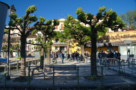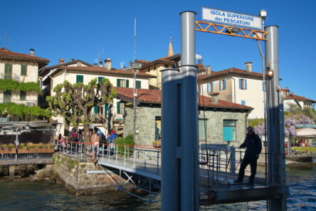 Il battello di ritorno da Villa Taranto a Stresa, fa scalo all'Isola dei Pescatori.