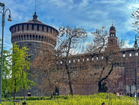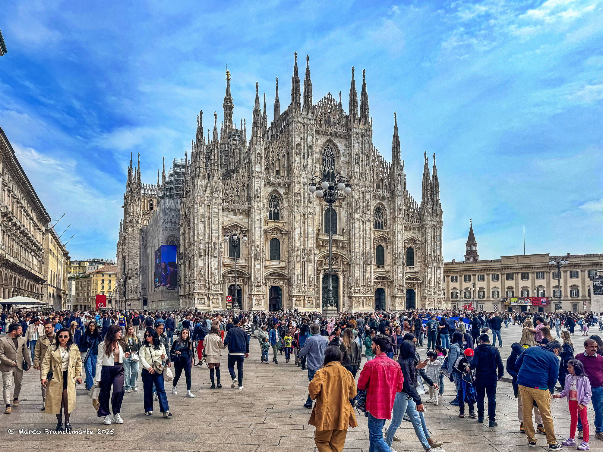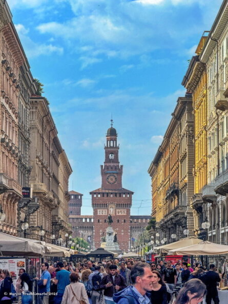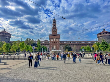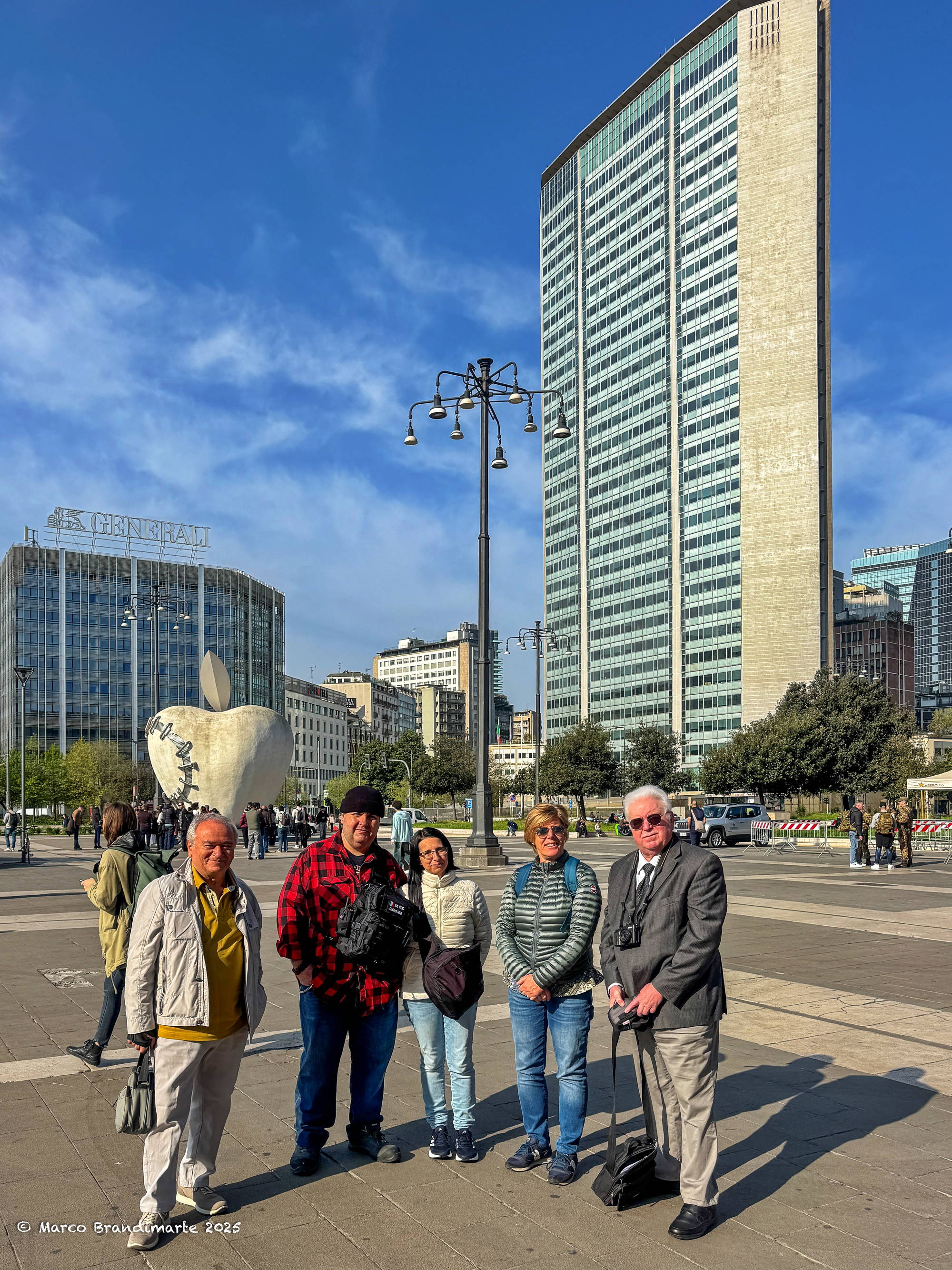 Nella piazza davanti alla stazione Centrale con il grattacielo "Pirellone", gli amici: Gianfranco IW1FRD, Giovanni e consorte, la moglie di Marco I1KKZ e Flavio IK1TGV.