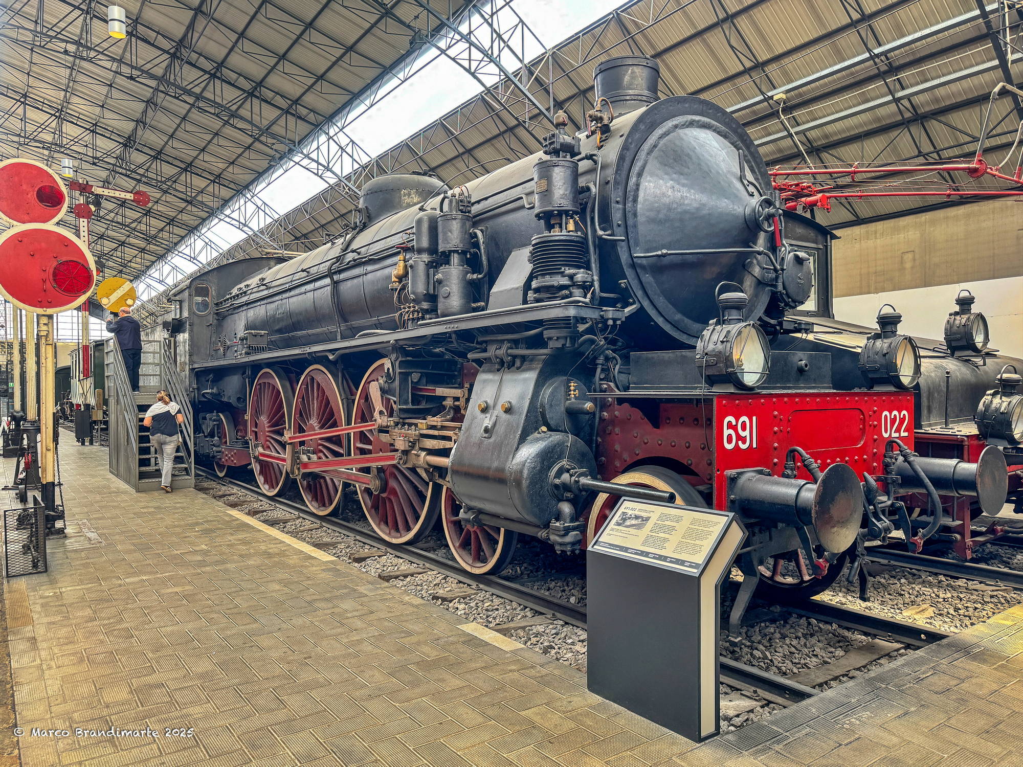 Nel museo, la sezione dedicata al trasporto ferroviario: la locomotiva a vapore Gr 746-031.