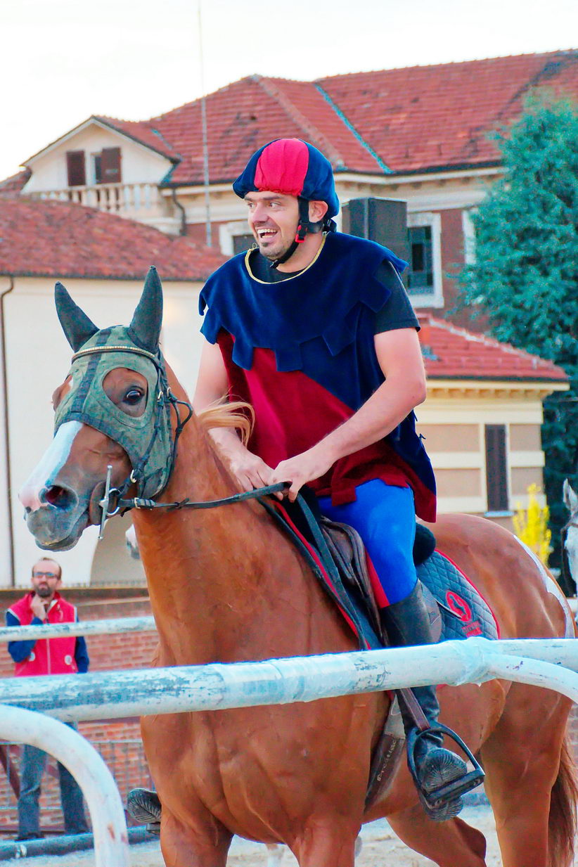 Fossano (CN): fantino dopo l'arrivo di un secondo turno eliminatorio.