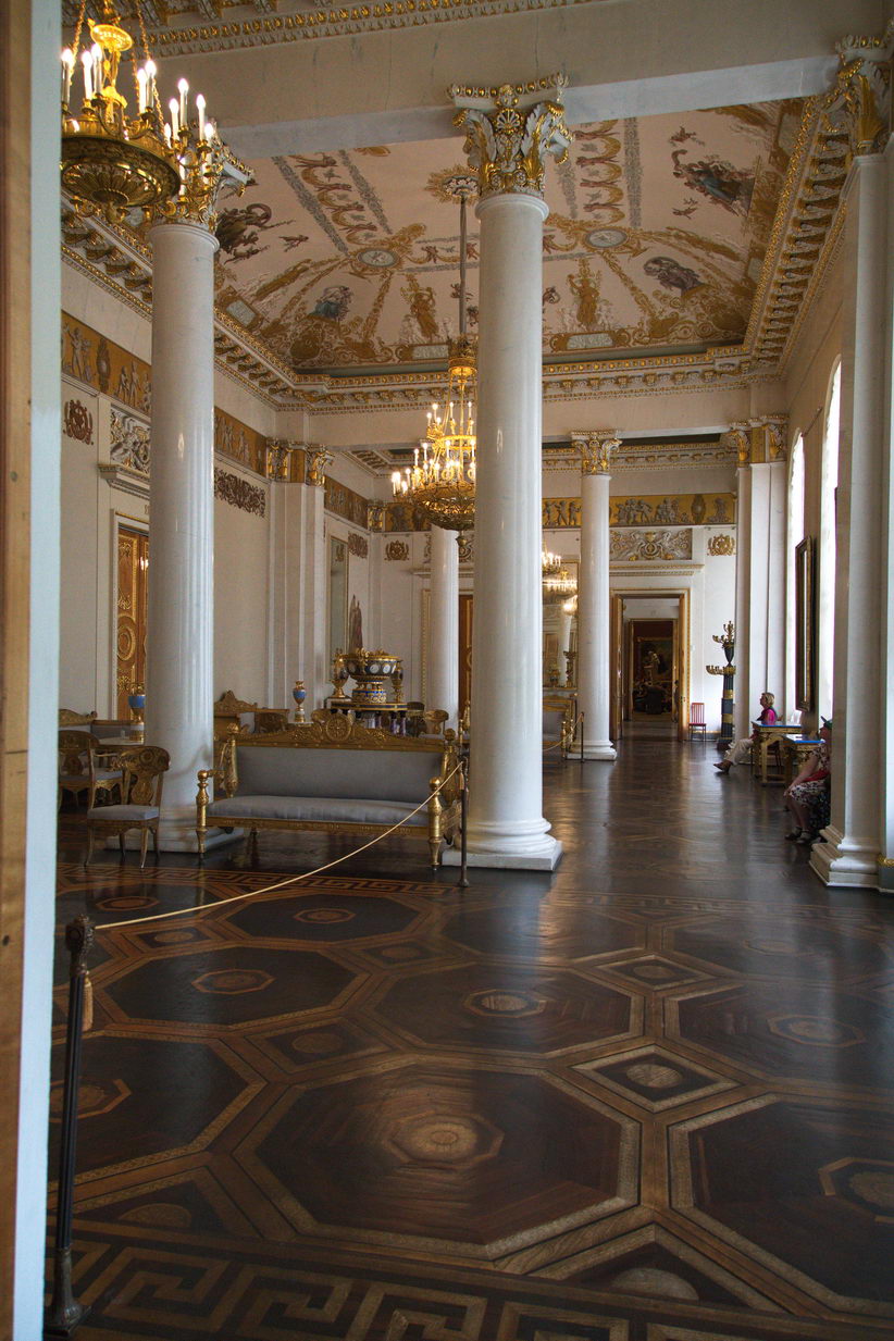 Sulle rive del golfo di Finlandia il Palazzo fu edificato da Pietro il Grande, il quale di ritorno da un viaggio in Francia, si ispirò alla reggia di Versailles (XVIII sec.); bellissimi sono gli interni della chiesa annessa al complesso che ripaga certamente con le splendidi immagini dei “fotografi ufficiali” del gruppo il costo dell'ulteriore biglietto.