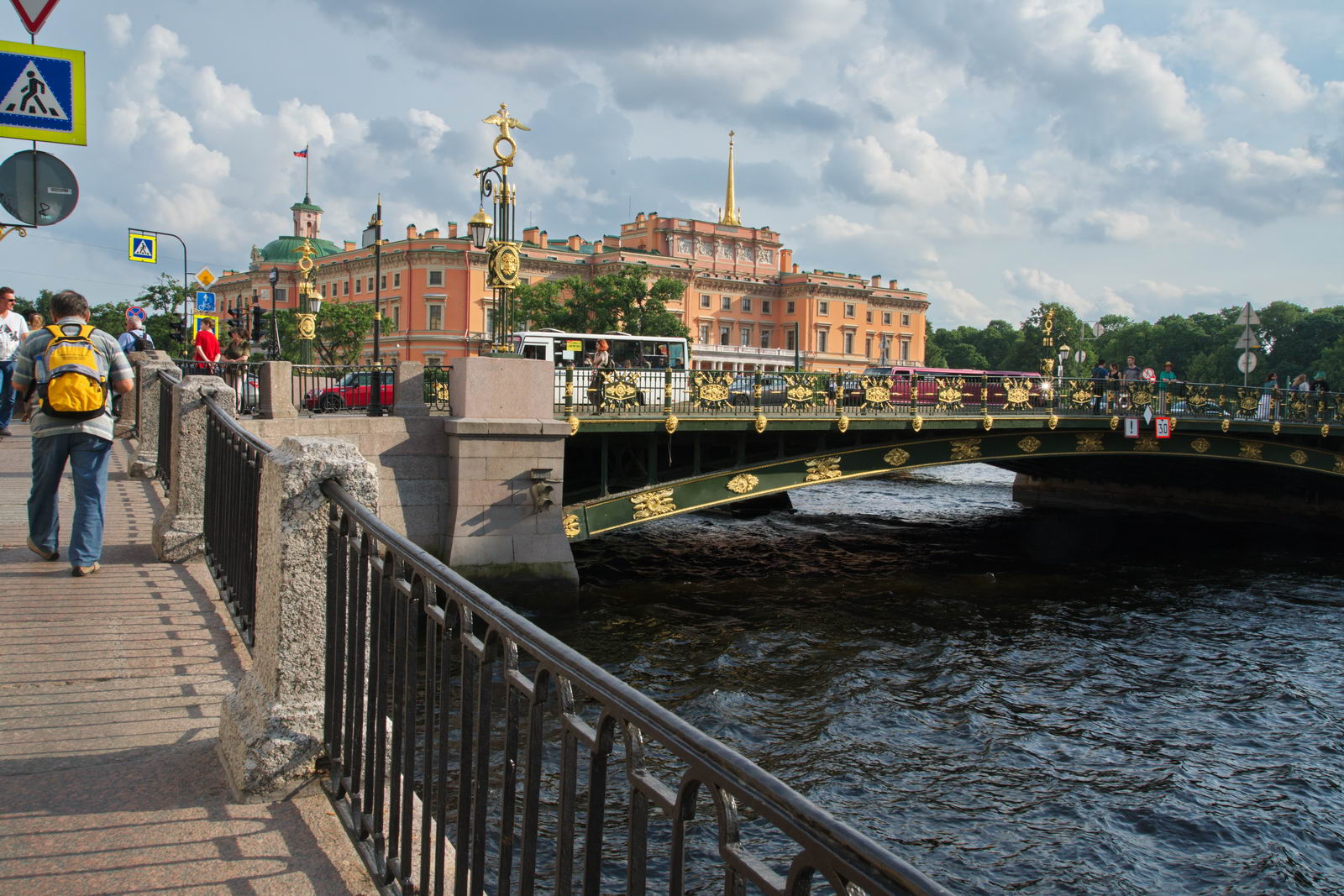 Dopo esserci rifocillati nel buffet del museo con accettabili panini, siamo riemersi dai lugubri scantinati del museo e attraverso la SADOVAJA abbiamo costeggiato il “CASTELLO MICHAJLOVSKIJ”, autentica fortezza concepita per Paolo (1801), il castello Michajlovskij o degli ingegneri è una delle sedi del Museo russo con ritratti della famiglia imperiale e personalità del XVIII secolo, noi ci siamo limitati a rubare alcune immagini dall' esterno, inoltrandoci nel GIARDINO D'ESTATE, meta di numerose coppie di giovani sposi che vengono qui a immortalarsi nei loro abiti nunziali.
