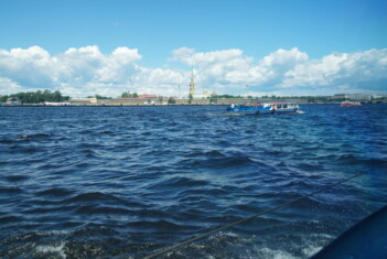 Panorama sulla Neva: sul fondo la fortezza di Pietro e Paolo.