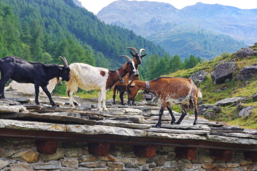 Pian Cervetto (Valle di Susa): capre sul tetto di un alpeggio.